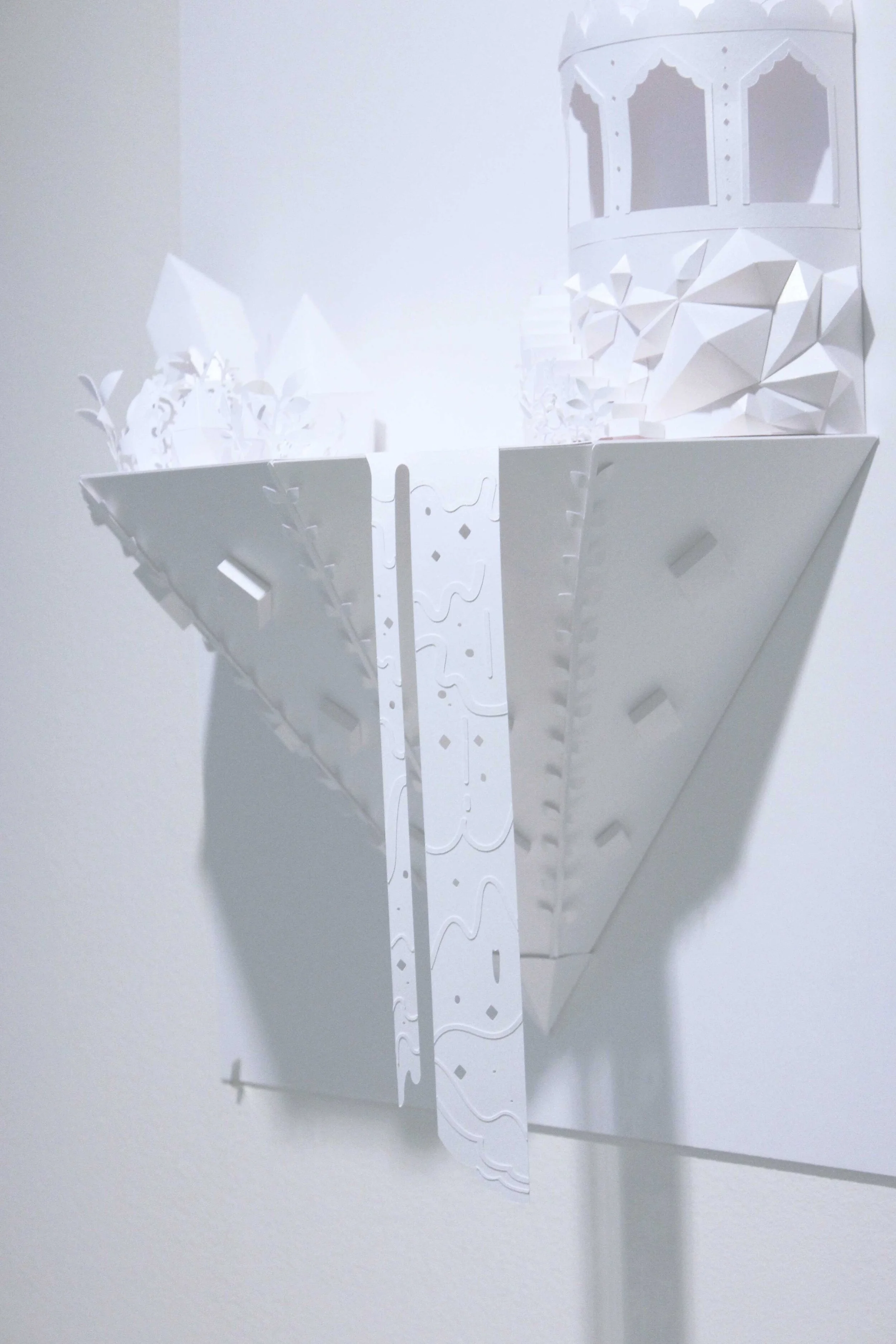 Paper is a simple instrument that bridges between the world of reality and imagination. My concept is manifested in two-forms, a interactive book and a paper sculpture. I wanted to create something seemingly unreal however it becomes real because I use paper. The interactive book that you can touch gives you a conscience of reality. Humanity desires that sense of touch and paper can grant us that fascination through storytelling.